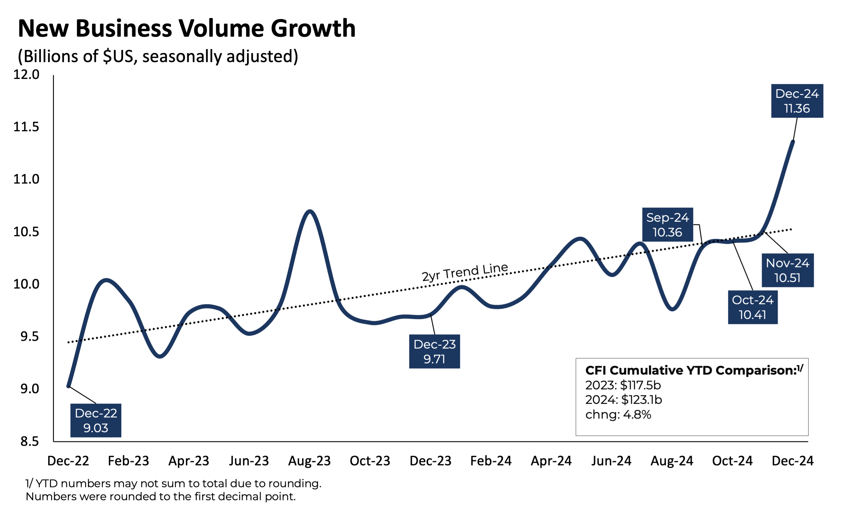 DECEMBER 2024: ELFA CapEx Finance Index Shows New Business Volumes Surged at Year-End